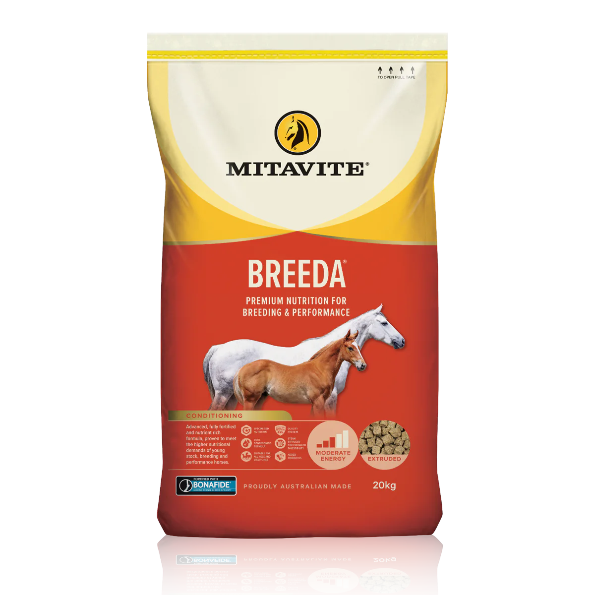 Trusted by top breeders, MITAVITE® BREEDA® offers a premium nutrient profile for total nourishment and wellbeing. Its cool conditioning formula supports you in producing horses that excel from conception to competition.